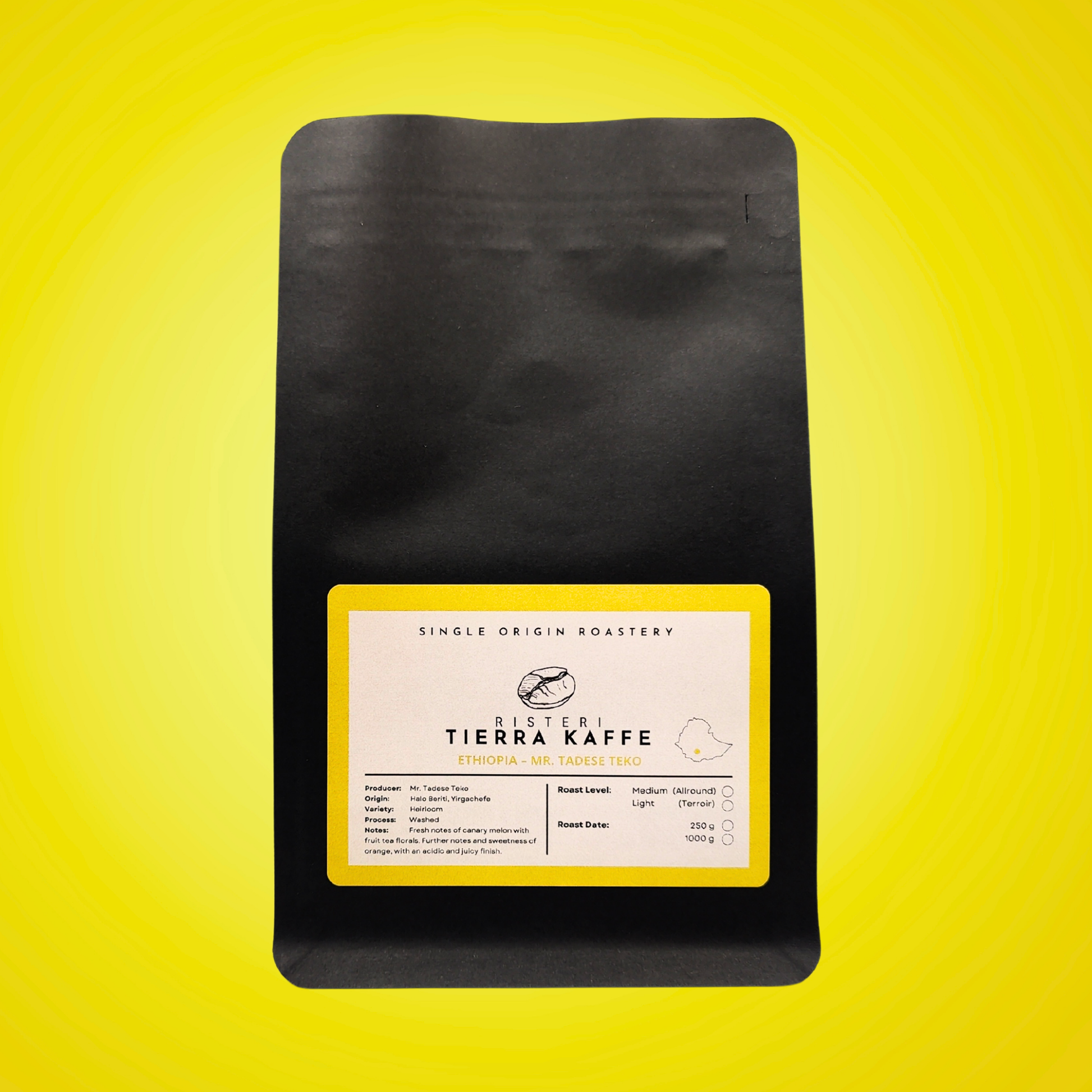 Kaffe fra Etiopien kan normalt spores ned til den vaskestation, hvor kaffen vaskes og forarbejdes, så det er usædvanligt med en etiopisk kaffe, der kan spores helt ned til den enkelte farm og kaffebonde. Mr. Tekos kaffe er grundet sin høje kvalitet blevet særligt udvalgt og holdes adskilt fra de andre kaffer, der vaskes på Halo Beriti-stationen. Resultatet i koppen er ren elegance med komplekse frugtnoter, der træder frem ved alle bryggemetoder.